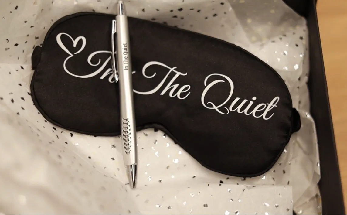 Includes the journal, engraved pen, leather bookmark & satin sleep mask.